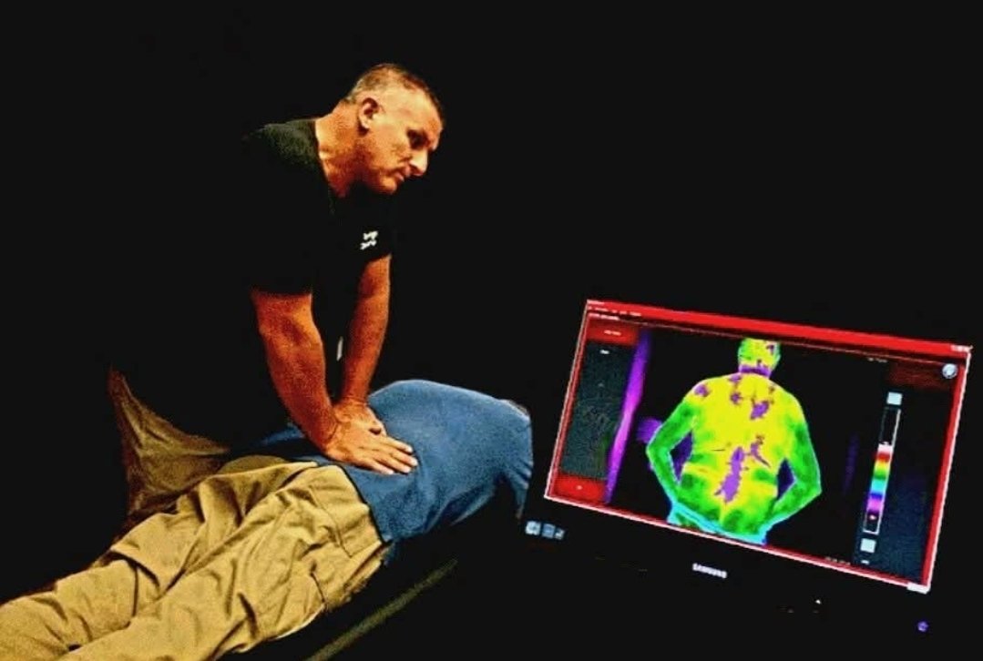 – Dr. Piana using thermal imaging to assess nervous system activity and pinpoint inflammation. This non-invasive technique is an essential tool in identifying subluxations and guiding personalized care plans.